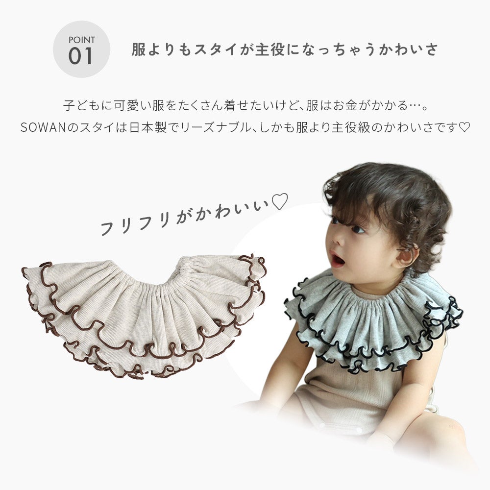 他の画像を見る スタイ 女の子 男の子 2枚セット 日本製 オーガニックコットン つけ襟 360度 360°フリル 赤ちゃん よだれかけ よだれカバー ブランド おしゃれ かわいい お宮参り ベビー 新生児 出産準備 出産祝い ビブ ギフト セット くるくる よだれが多い 子 リブ ベビー服 当店特別価格 ¥ 1,540 税込 カートに入れる お気に入りに登録する
