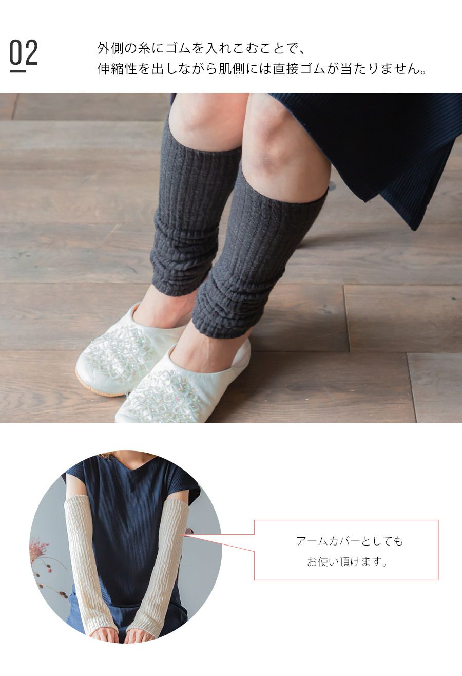 POCCA PLUS 遠赤外線 レッグウォーマー 冬 冬用 ウール シルク 絹 毛 ロング 日本製 ゆったり レディース メンズ アームカバー 睡眠 薄手 締め付けない