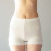 シルクを使用したふんわり軽いパンツです。リブ編みで伸縮性があるためマタニティショーツとしてもご使用いただけます。特にシルクは人と同じタンパク質で作られているため、肌との相性が良く敏感肌の方に最適な素材です。