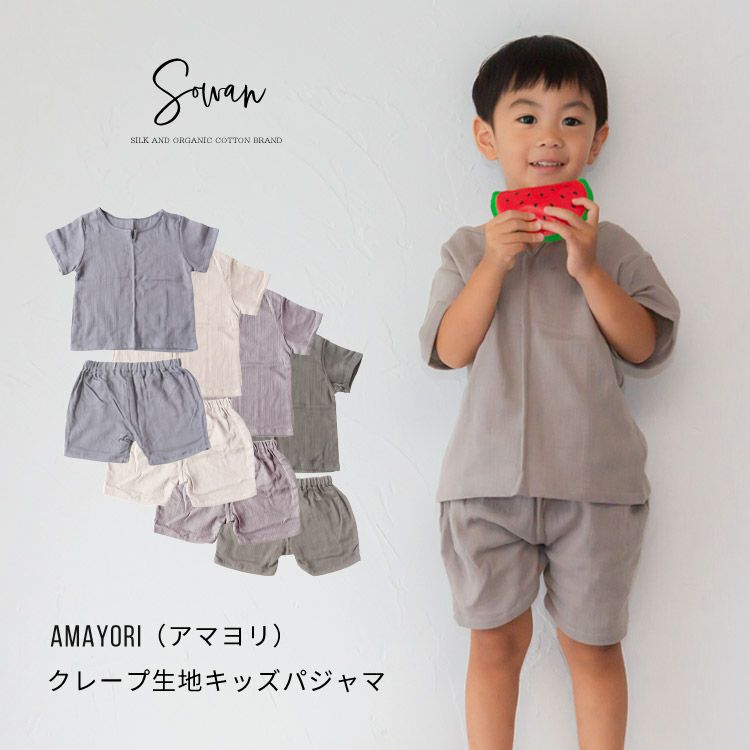 amayori(アマヨリ)クレープ生地パジャマ コットン上下 セットキッズ 子供 子ども ベビー 女の子 男の子 半袖 薄手 ルームウェア 80 90 100 110 涼しい 綿 夏 かわいい 甚平