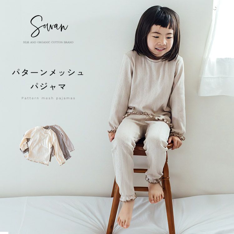【日本製】パターンメッシュ ベビー キッズ パジャマ 長袖 薄手 春夏 80 90 100 110 綿 男の子 女の子 おしゃれ かわいい 可愛い 部屋着 子供 子ども こども コットン 保育園 1歳 2歳 3歳 4歳