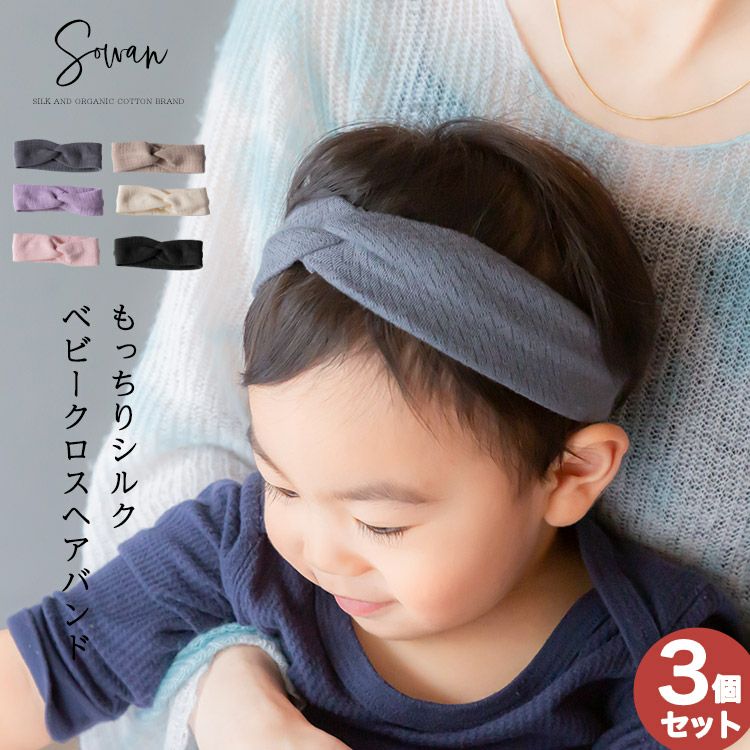 もっちりシルク ベビー クロスヘアバンド【選べる3個セット】
