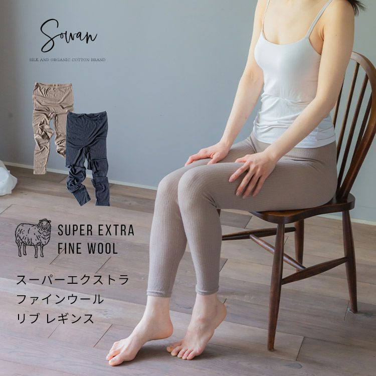 スーパーエクストラファイン ウール リブ レギンス レディース 10分丈