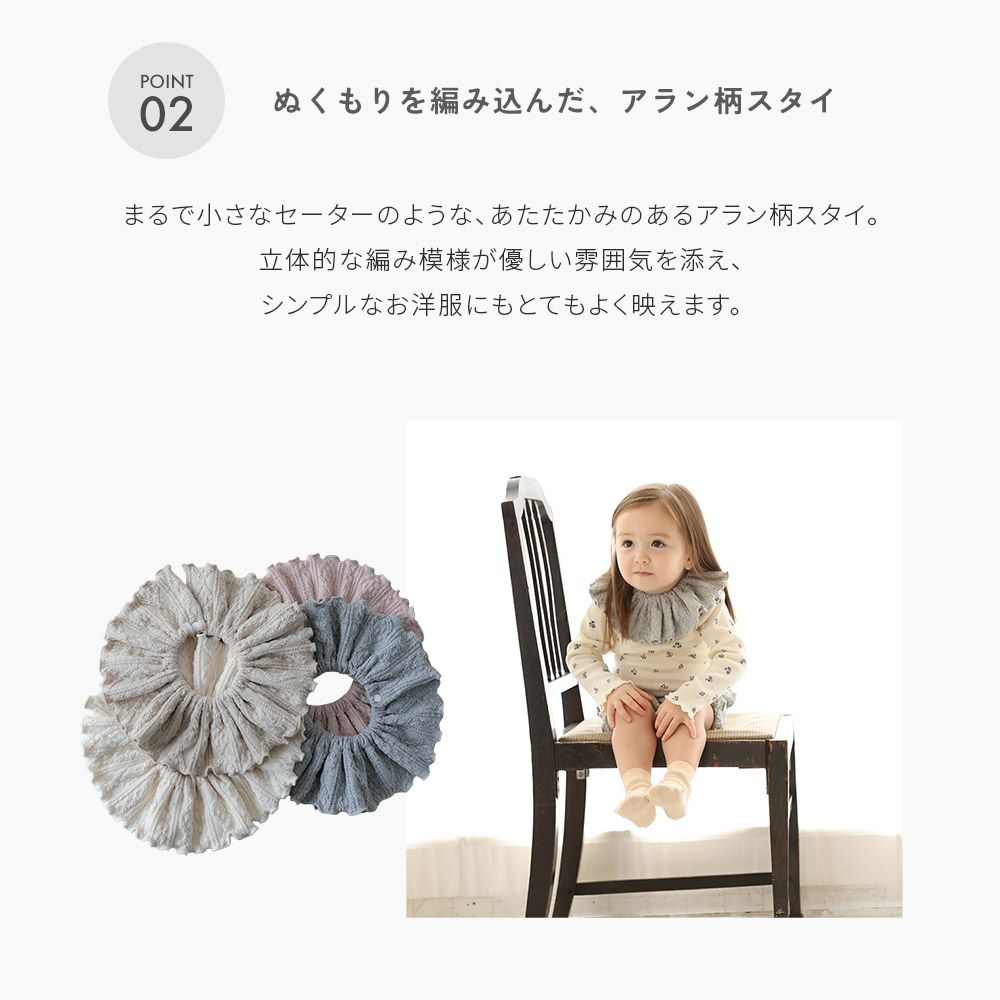 他の画像を見る 2枚セット アラン柄 スタイ 女の子 男の子 日本製 コットン つけ襟 360度 360°フリル 赤ちゃん よだれかけ よだれカバー ブランド おしゃれ かわいい お宮参り ベビー 新生児 出産準備 出産祝い ビブ ギフト セット くるくる よだれが多い 子 リブ ベビー服 当店特別価格 ¥ 1,650 税込 カートに入れる お気に入りに登録する